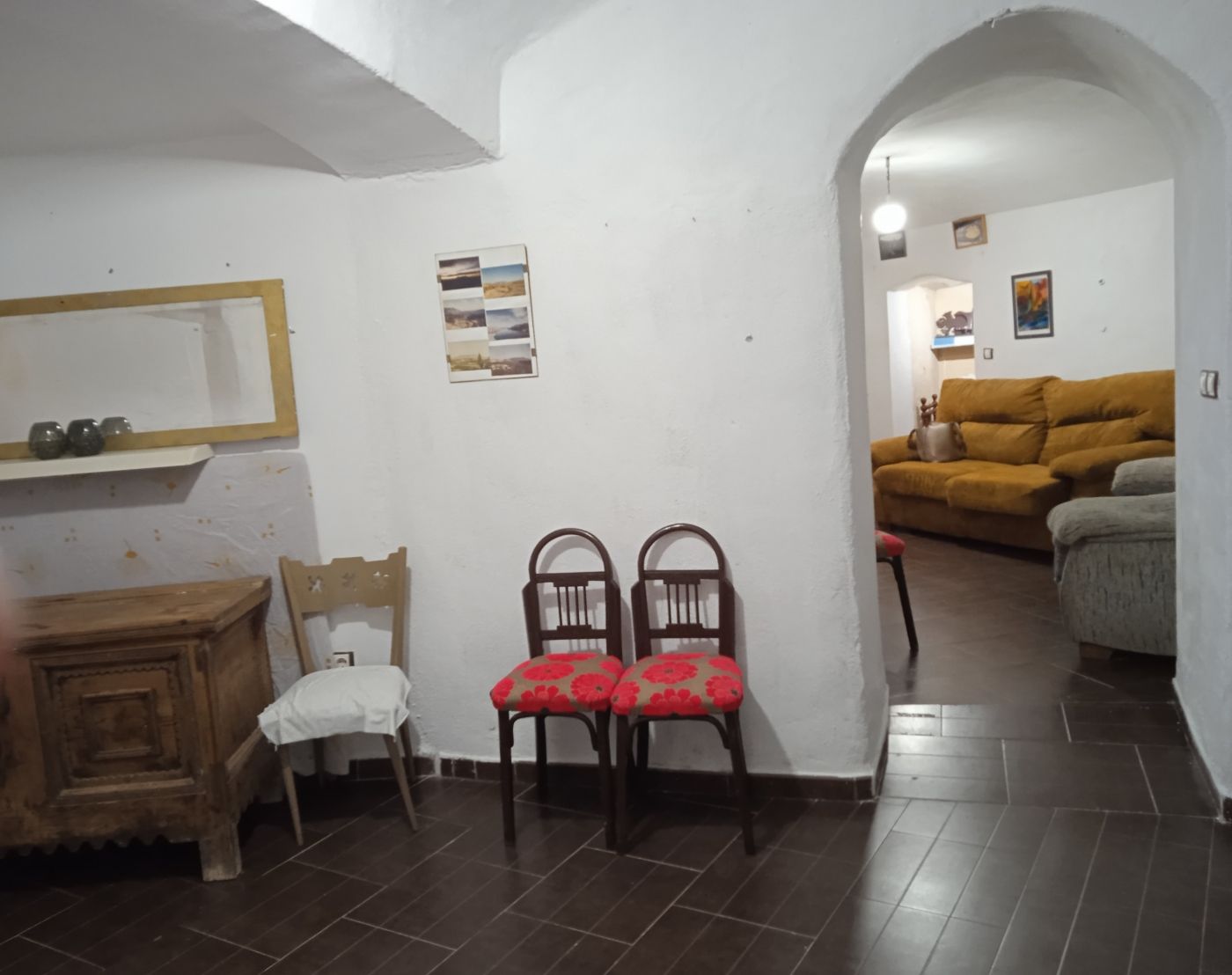 1 Bed, 1 Bath Cave House For Sale in Cuevas Del Campo, Granada Price: €49,950 Reference: TPG590 Region: Granada | City: Cuevas Del Campo | Type: Cave House Area: 97.00 m² | Plot: 338 m² Bedrooms: 1 | Bathrooms: 1 Property Description Discover the charm of urban living with this one-of-a-kind 1-bedroom cave house located in the center of Cuevas del Campo. Boasting a traditional yet modern design, this property offers a distinctive living experience that combines heritage with contemporary comfort. Key Features Entrances Galore: Welcoming you with a traditional wide wooden door protected by a modern double glass door with an aluminium frame, the main entrance sets the tone for the unique character of this cave house. Additionally, a side door with an aluminium frame and single glazed glass leads to a half-covered porch, providing a cozy outdoor space. Well Equipped Kitchen: The small but efficient kitchen is equipped with a gas cooker and a bread oven, making it a delightful space for culinary enthusiasts. The gas water heater, housed in the kitchen, offers convenience but may benefit from an upgrade. Dining Room: The living-dining room with an open fireplace is the heart of the home, providing a versatile space for relaxation and entertainment. A built-in cloakroom on the left adds a touch of practicality to the layout. Generous Bedroom: The main bedroom offers ample space, and there is potential to create a second bedroom by introducing a partition wall in the main hall, allowing for flexibility in the floor plan. Full Bathroom: Enjoy the convenience of a full bathroom accessible from the main entrance hall, providing privacy and functionality. Modern Conveniences: Mains water and mains electricity ensure a seamless living experience. Internet connectivity is possible, catering to the demands of modern living. Shared Courtyard: Share a charming courtyard with two other apartments, providing a communal yet intimate atmosphere. The possibility of splitting the driveway offers additional convenience. Street Parking: Parking is hassle-free with ample street parking available, making this central location even more appealing. Opportunity for Upgrade: While the cave house is in good structural condition, it presents an exciting opportunity for personalization and modernization to reflect your unique style. Summary Don’t miss the chance to own a piece of history with this centrally located cave house. Embrace the potential to create your dream home in the heart of town — combining tradition with modern comfort.