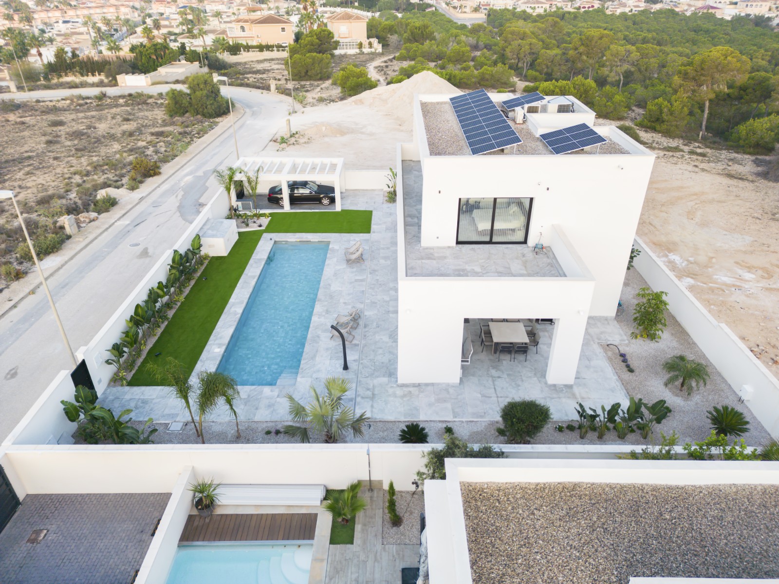 Welcome to the oasis of serenity and elegance that redefines life on the Mediterranean coast. This two-storey villa, with a superior design, stands majestically in the prestigious La Marina Urbanisation, in San Fulgencio, Alicante.