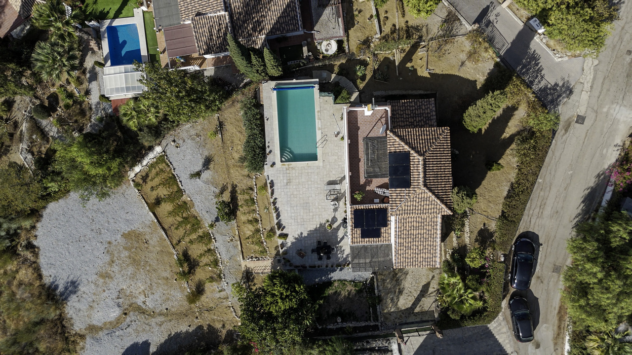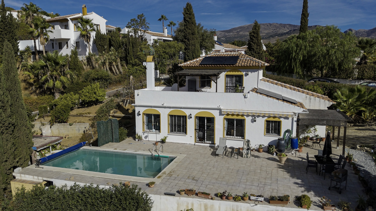 EXCLUSIVE: Villa Petirrojo is a beautifully presented three-bedroom, two-bathroom villa set on a generous 1,400 m² south-facing corner plot. Located in the newly urbanized phase two of Cortijo Romero, the area benefits from tarmac roads, street lighting, mains services, and upcoming fibre optic installation.The property offers excellent privacy, spacious outdoor areas, and a bright, modern interior — perfect for permanent living or as a holiday home. Air conditioning (hot/cold) units throughout; wood-burning fireplace in lounge. Spacious open-plan living/dining area with multiple windows and patio doors offering abundant natural light. Modern kitchen with marble countertops and south-facing views.8x4m private pool (recently retiled) with cover and corner steps. Large terraces and outdoor dining areas; small garden and vegetable plots. Garage with internal access, tiled flooring, and potential for conversion to a 4th bedroom. Solar panels installed for energy efficiency and reduced electricity bills.