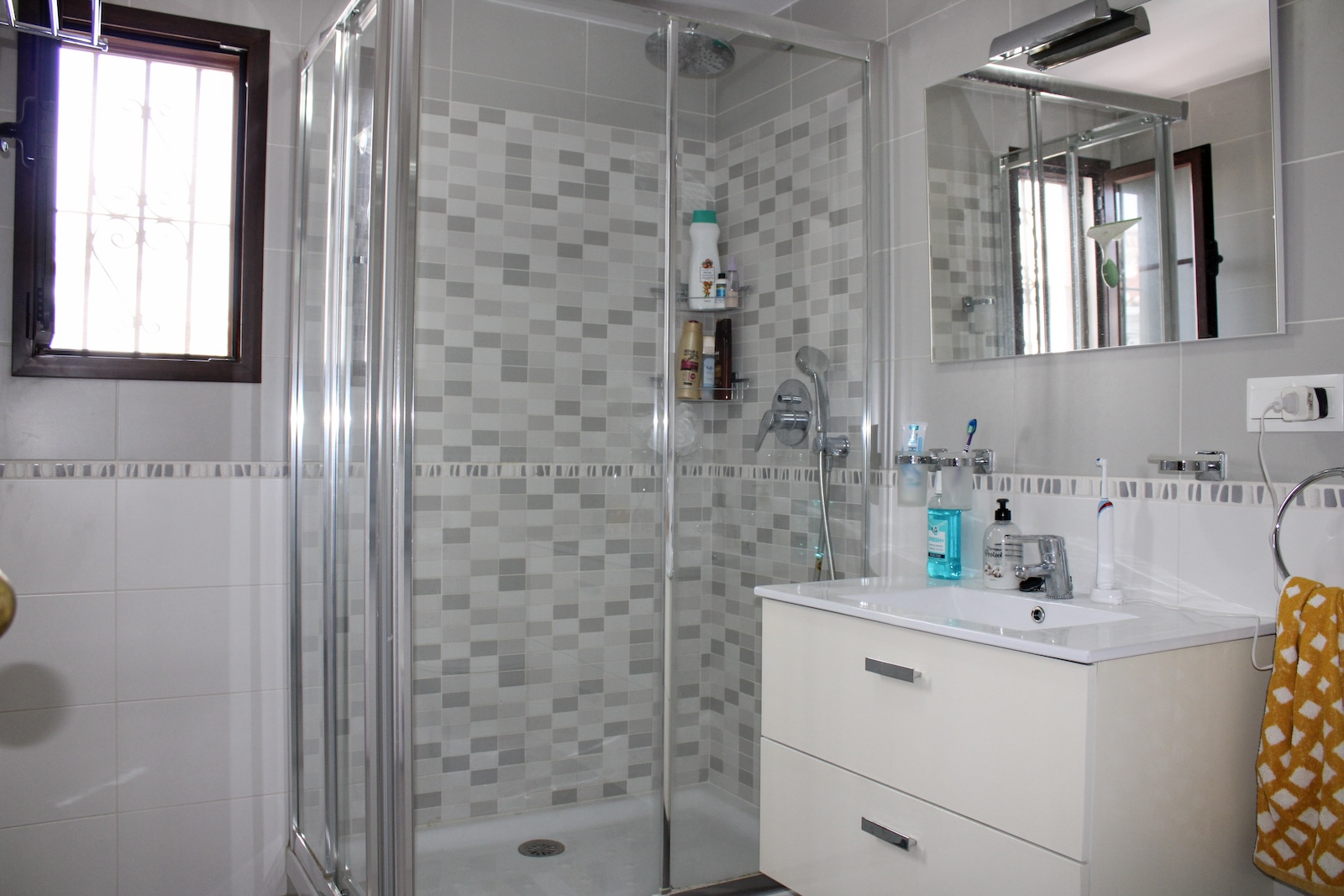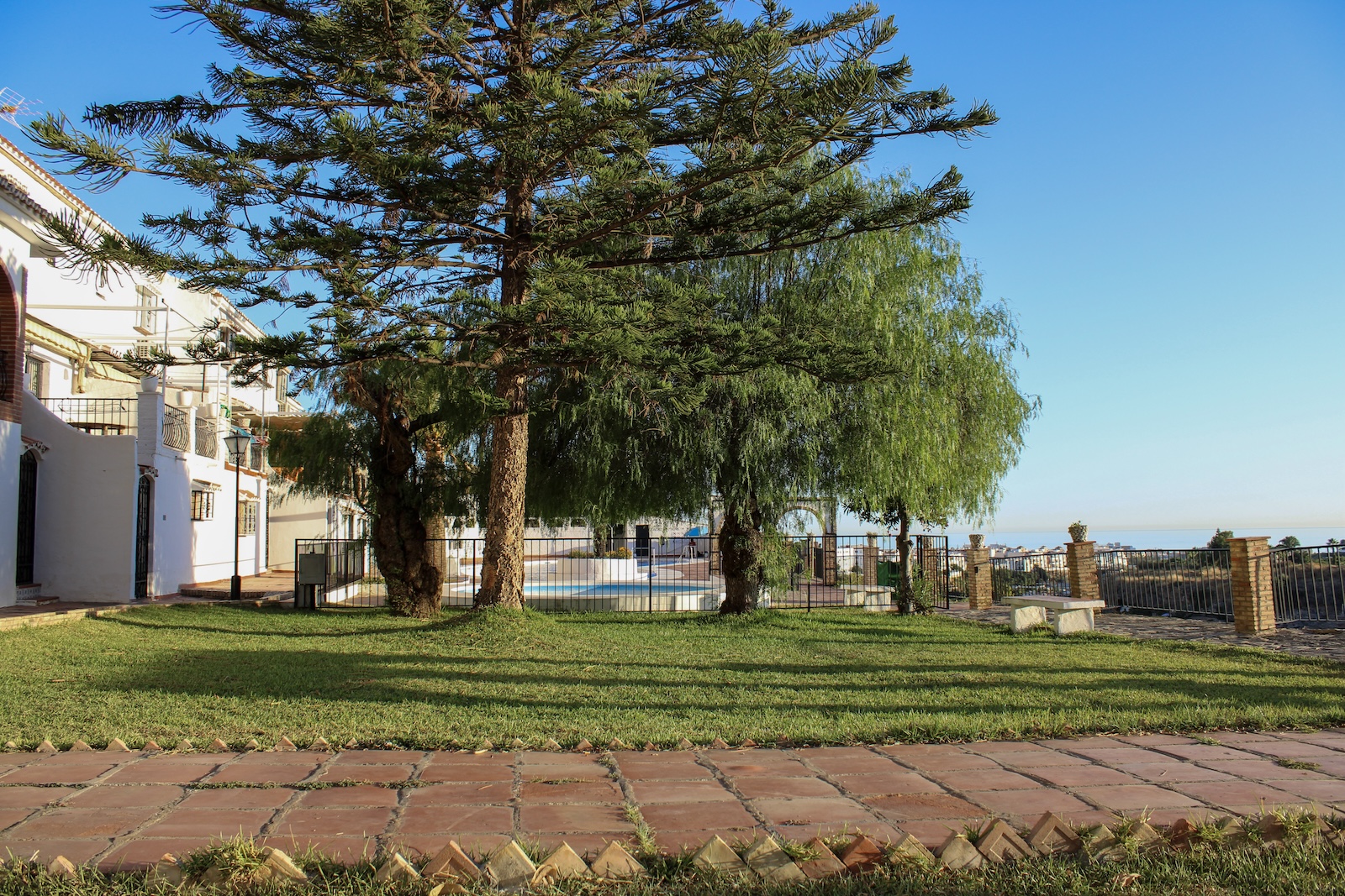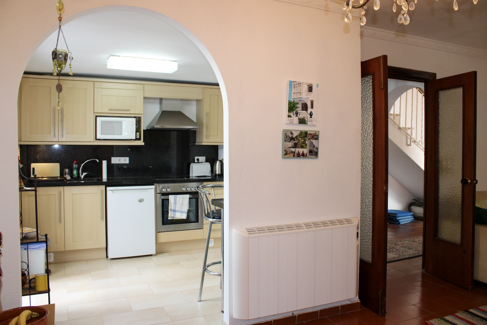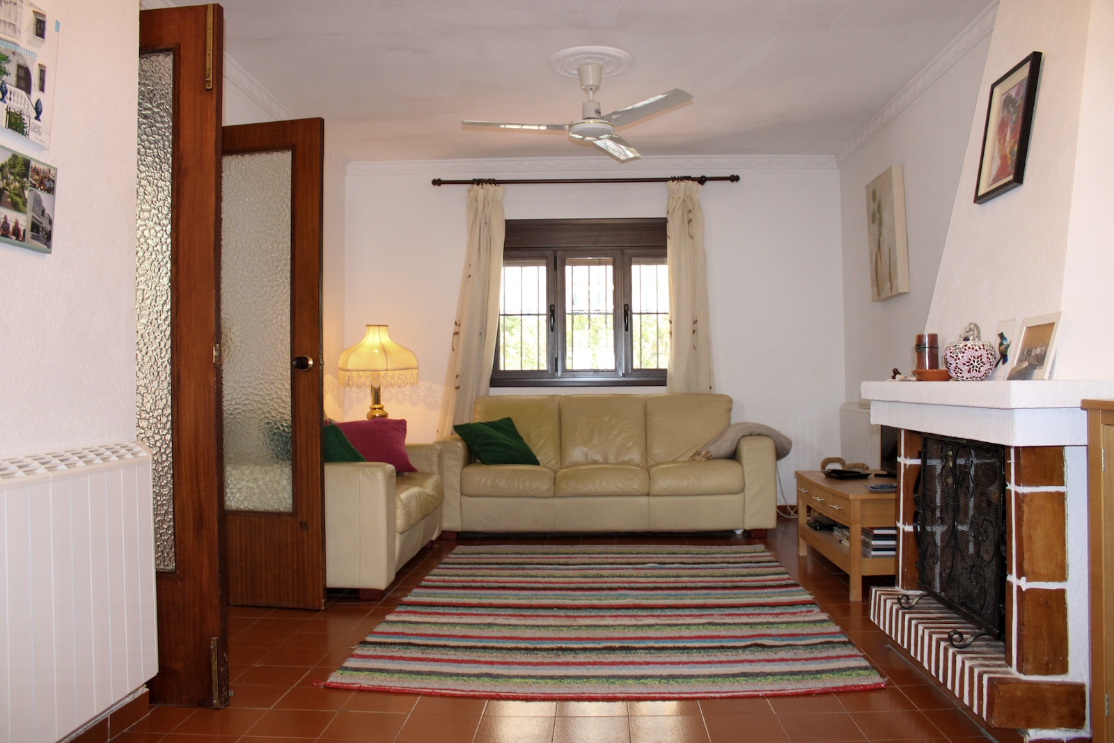 Well-maintained townhouse in the urbanization Almijara 1 in Nerja, with 3 terraces, 3 bedrooms, 1 bathroom and a toilet. There is a communal pool in the area, the nearest supermarket is only 5 minutes walk away. It takes 15 minutes to Playa Burriana and 20 minutes to Balcon de Europa. The house is sold fully furnished, just bring your bags and move in.An open and a covered terrace welcome us at the entrance, the obvious places to spend time with family and friends. Inside the house, we are welcomed by a hall that connects the different parts of the house. To the right we have a toilet and to the left, a large living room with fireplace and a dining area in a separate room. Adjacent to the living room and dining area, there is a fully equipped kitchen. From the kitchen you also reach the laundry room, as well as an exit to the back of the house.From the hall we take the stairs to the upper floor, here we have a bathroom with shower and three bedrooms. Two of the bedrooms have their own terrace, one with a glazed terrace and one with a lovely terrace with morning sun. A wonderful terrace to drink your morning coffee on.Malaga airport is just under 50 minutes by car, but there is also a regular bus service from Nerja. The renowned Baviera golf course is only 25 minutes by car from your new home. In winter you only have an hour and a half drive to Granada with skiing in Sierra Nevada, the best of both worlds.