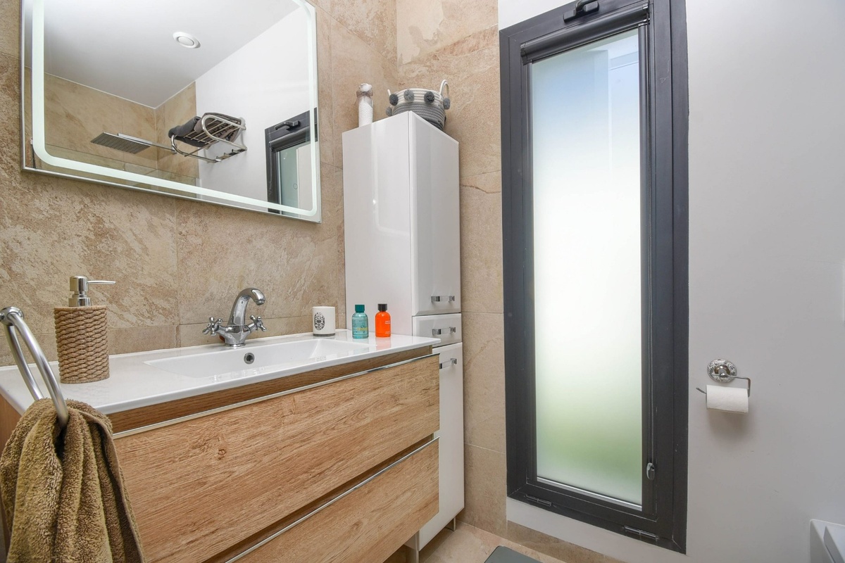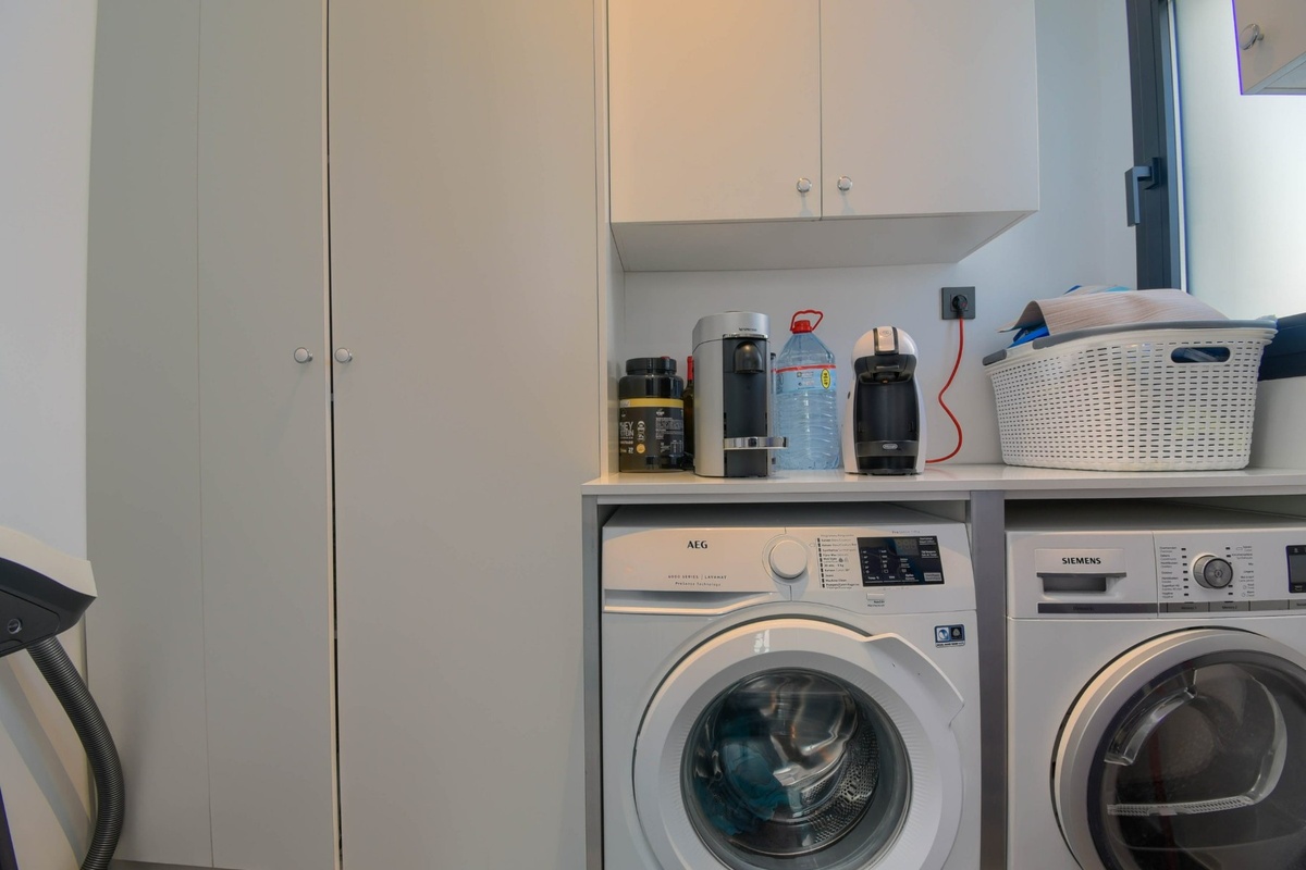 At the back of the house there is a storage room and a bicycle shed, at the front there is a parking area and a sunny terrace of 100 m2. On the side of the villa there is an outdoor shower and next to it a storage room, where the gas boiler is located. Air conditioning/heating throughout with Daikin compressor. Gas central heating. The villa has modern furniture that can be purchased (not included in the price).